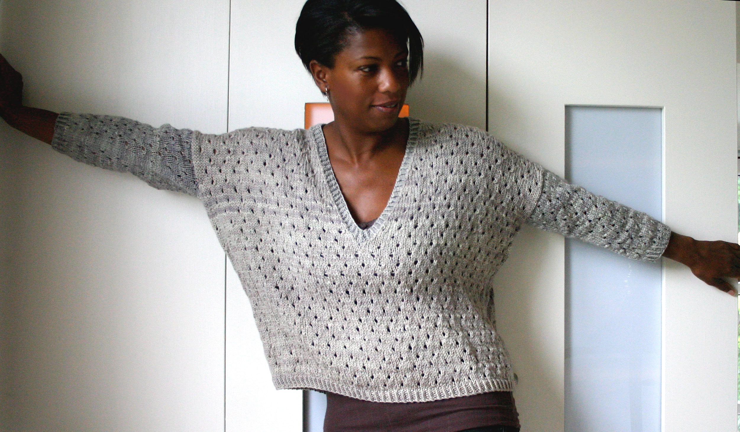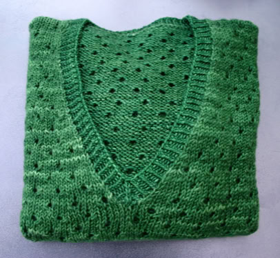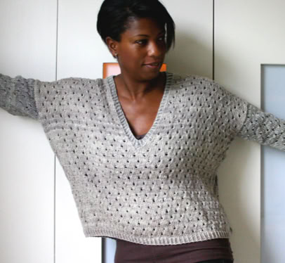 The front and back are knitted flat from the bottom up. Once seamed, the sleeves are picked up and knitted in the round from the armhole downwards. The neck band is also picked up and knitted using a twisted rib. A quick and satisfying knit!