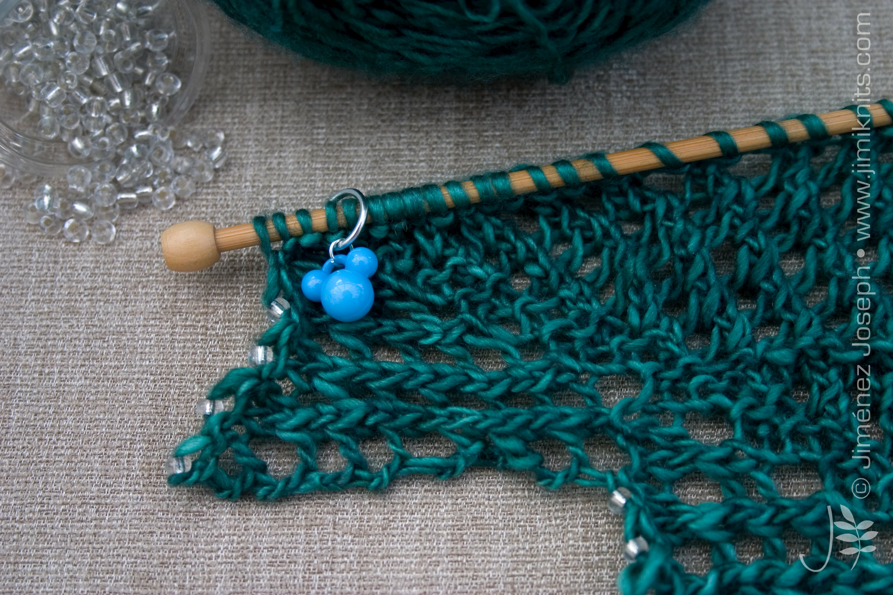 4mm (US 6) (or size required to get gauge) straight needles, or circular needles of 60cm (24”) or longer; 1 stitch marker; 0.75mm crochet bead hook; 3mm (US 2.5) crochet hook (or similar size) and a yarn needle for weaving in ends.