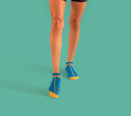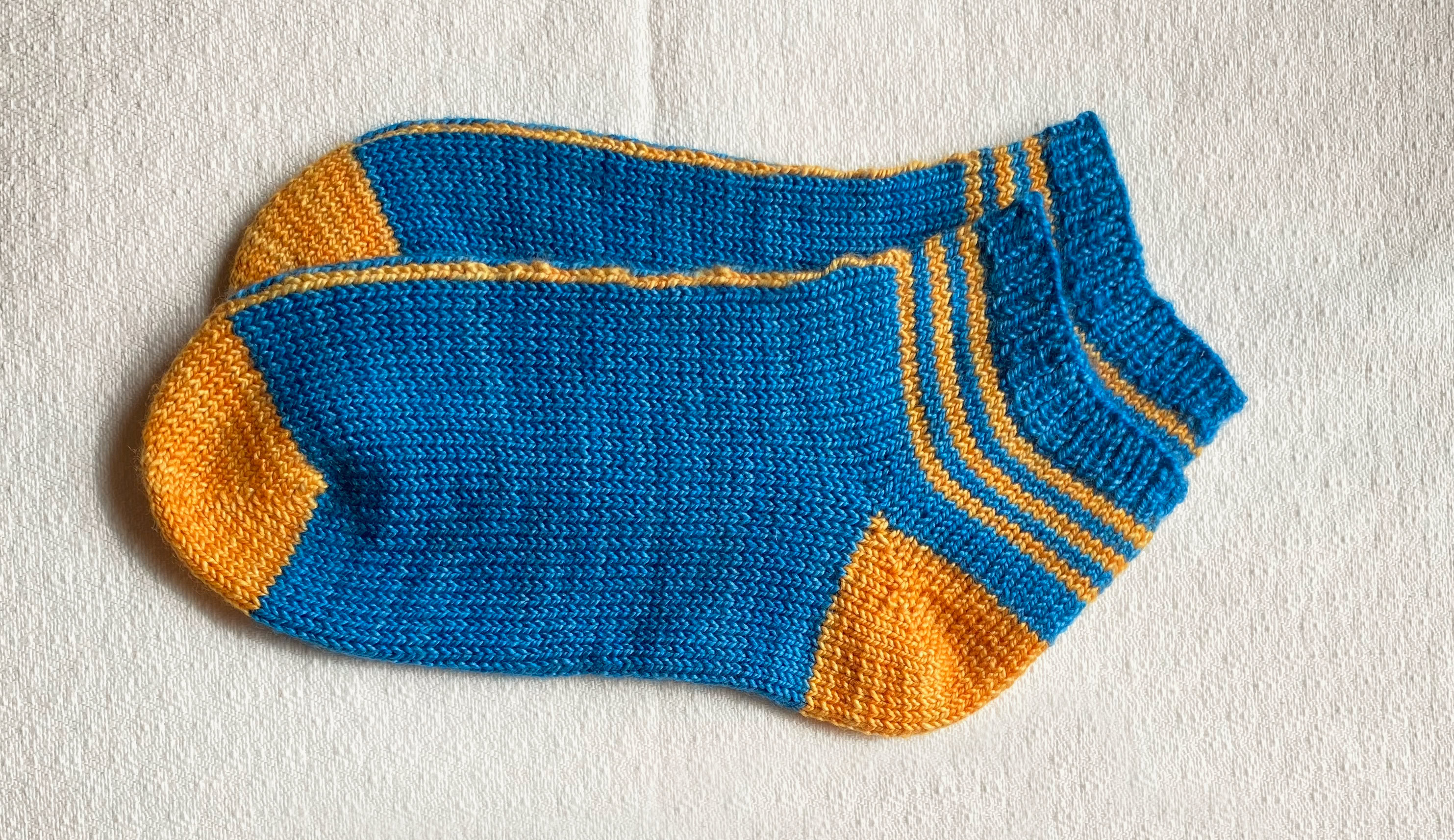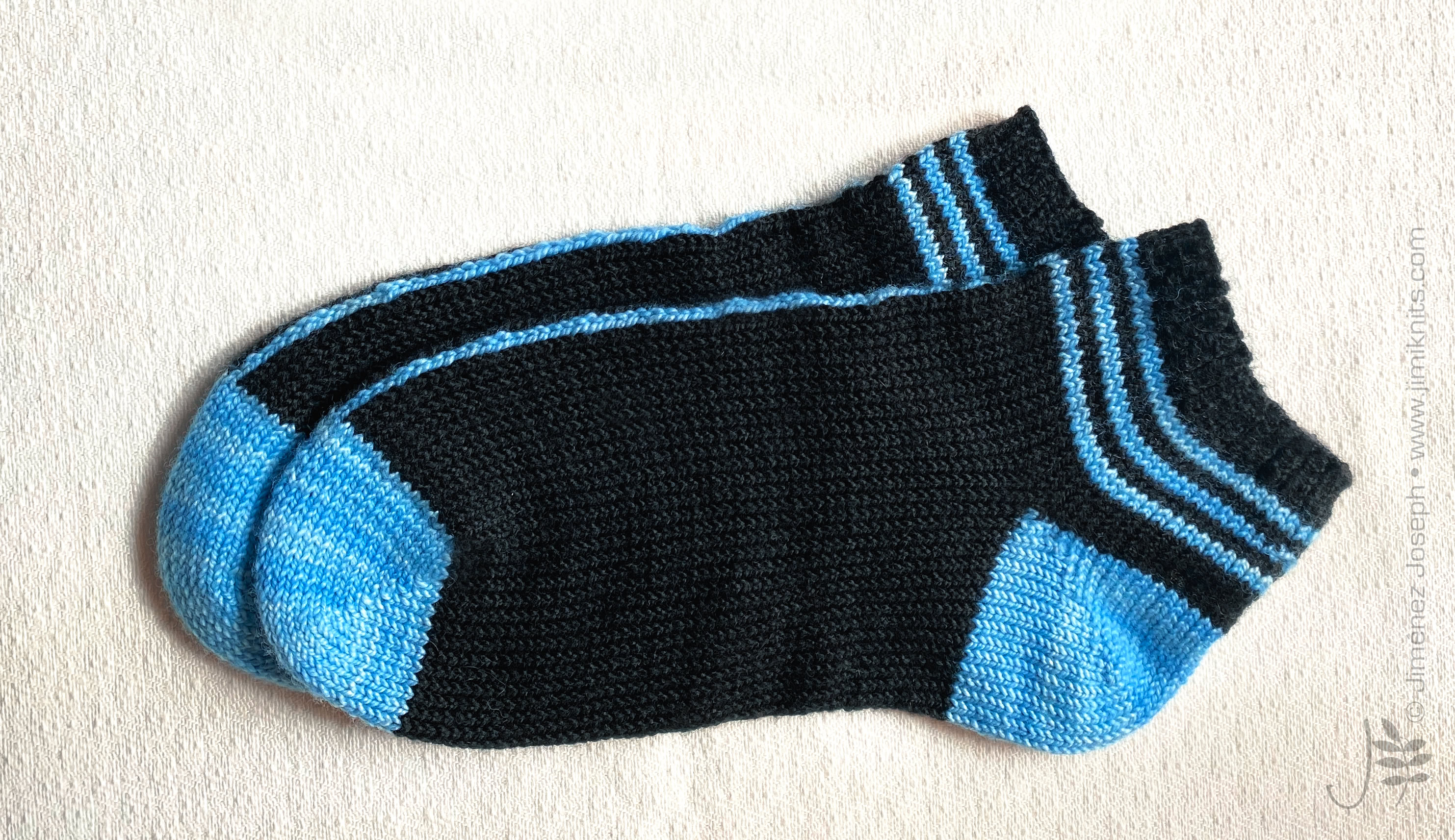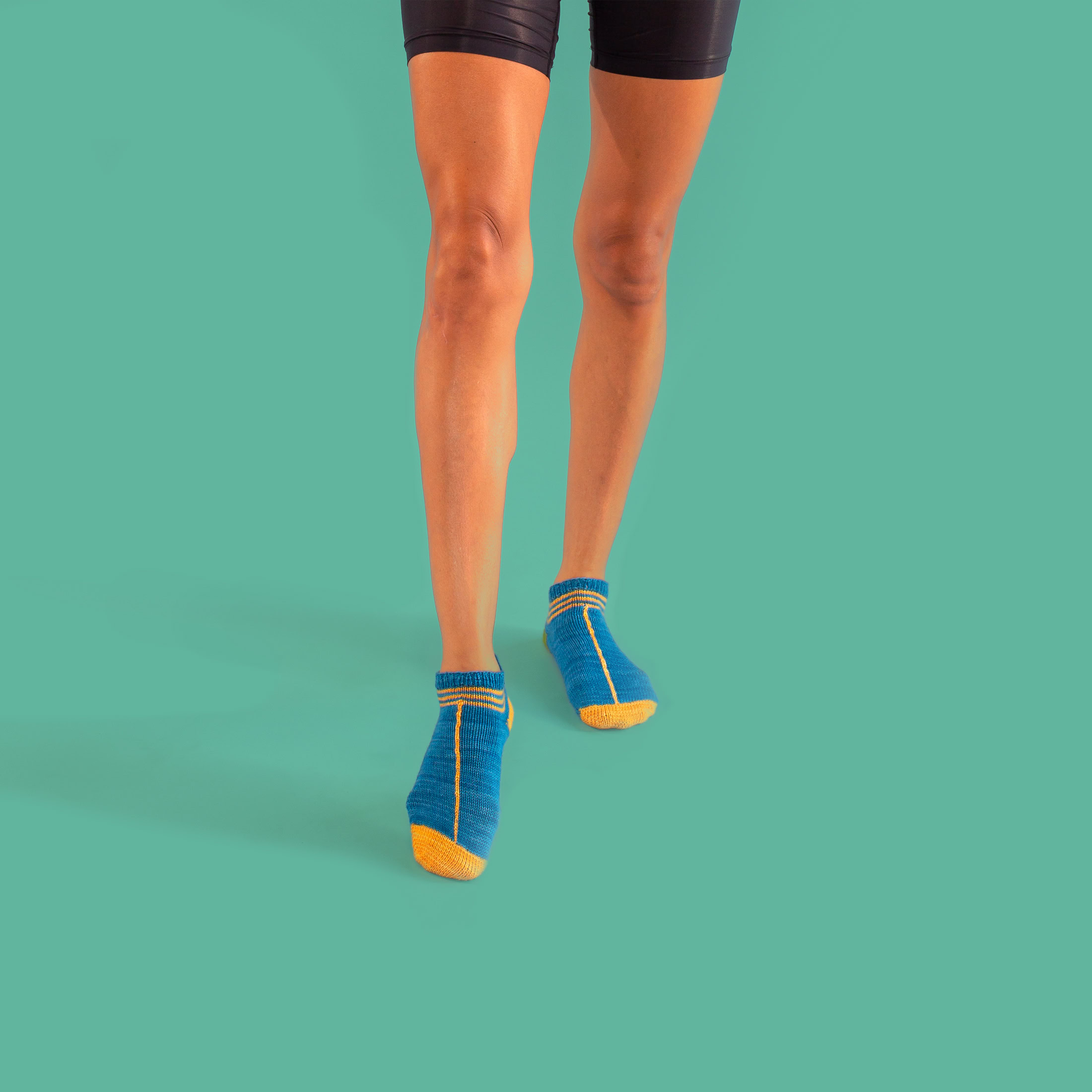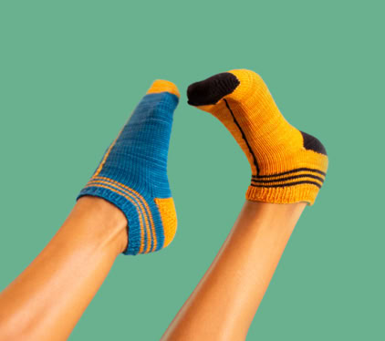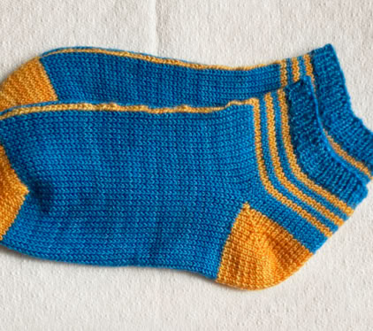 InLine Socks - is a 2-colour sporty ankle sock featuring a single stitch line that runs up the centre. These socks are worked in the round from the toe-up using circular needles, with an afterthought heel.
