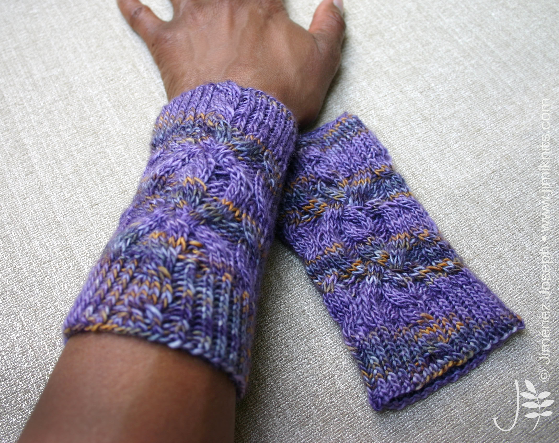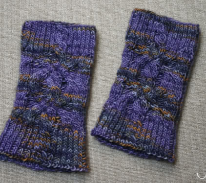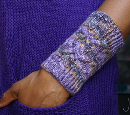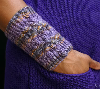 This cuff is knitted in the round using circular needles or DPNs if preferred. The twisted stitch ribbing gives the cuff a firm fit, while the cable pattern adorns the top section.