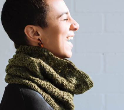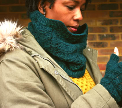 Yzzy Cowl is a part lace and part cable neck warmer with scalloped edge and textural patterning. A cosy cowl that is made in the round from the bottom up using circular needles. This special combination of textures creates visual interest as well as comfort and warmth.