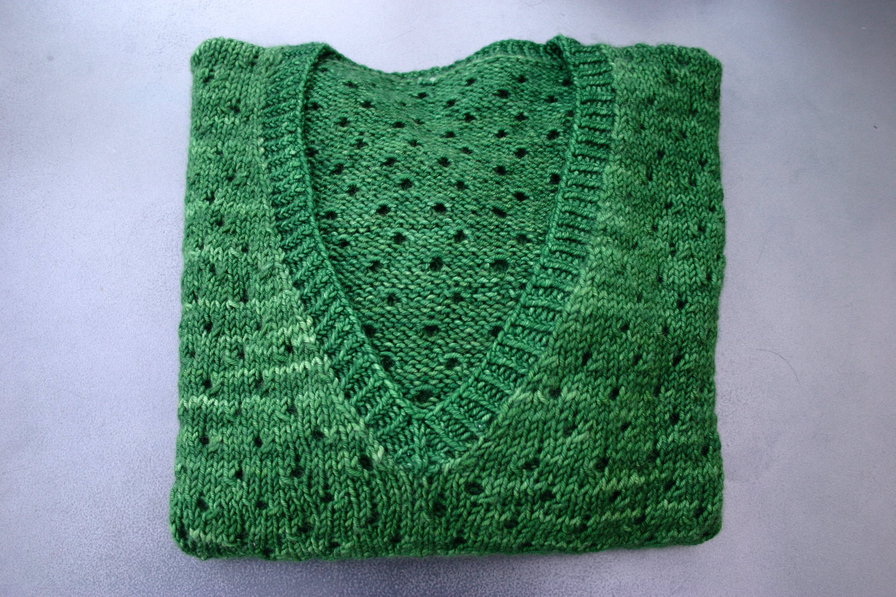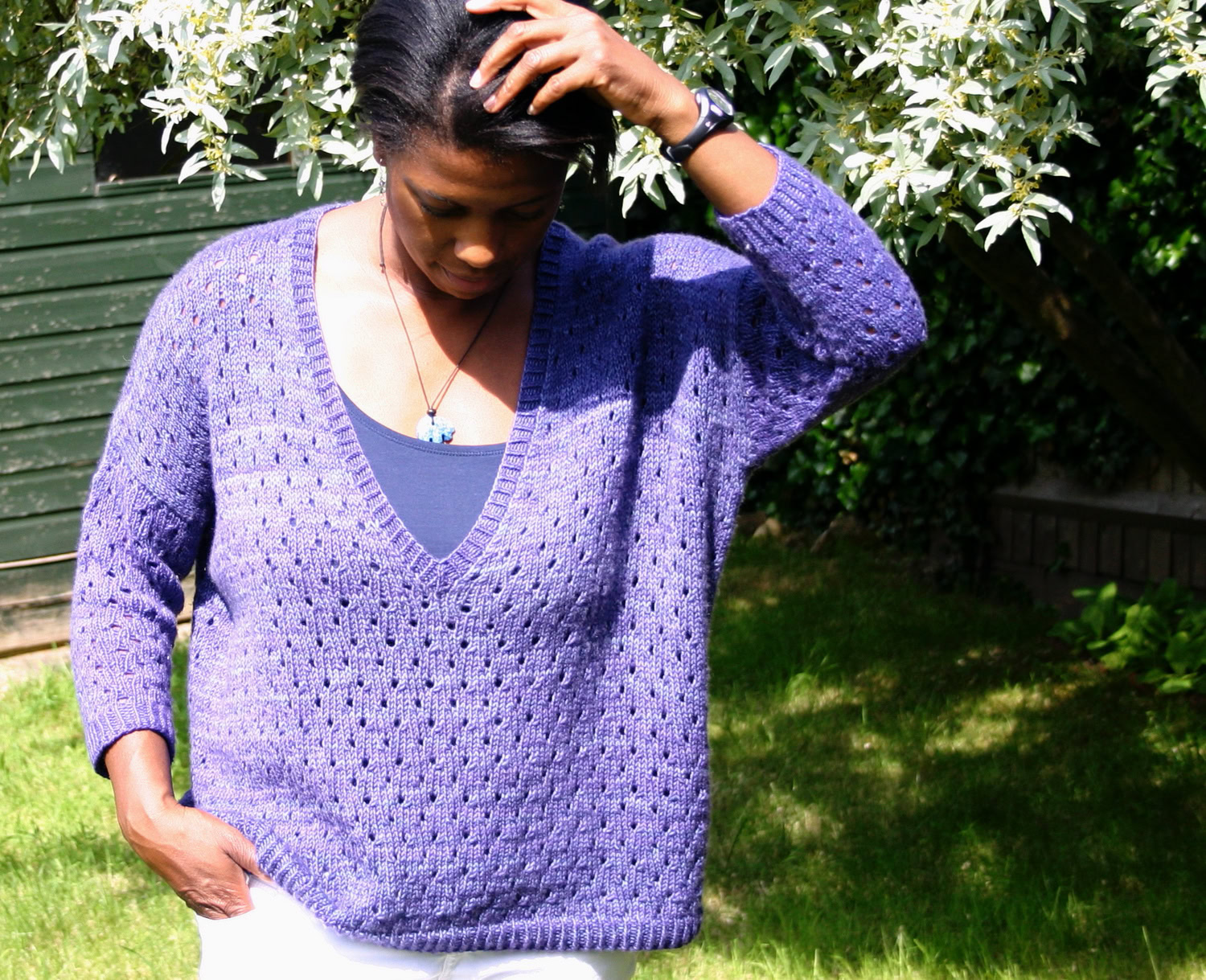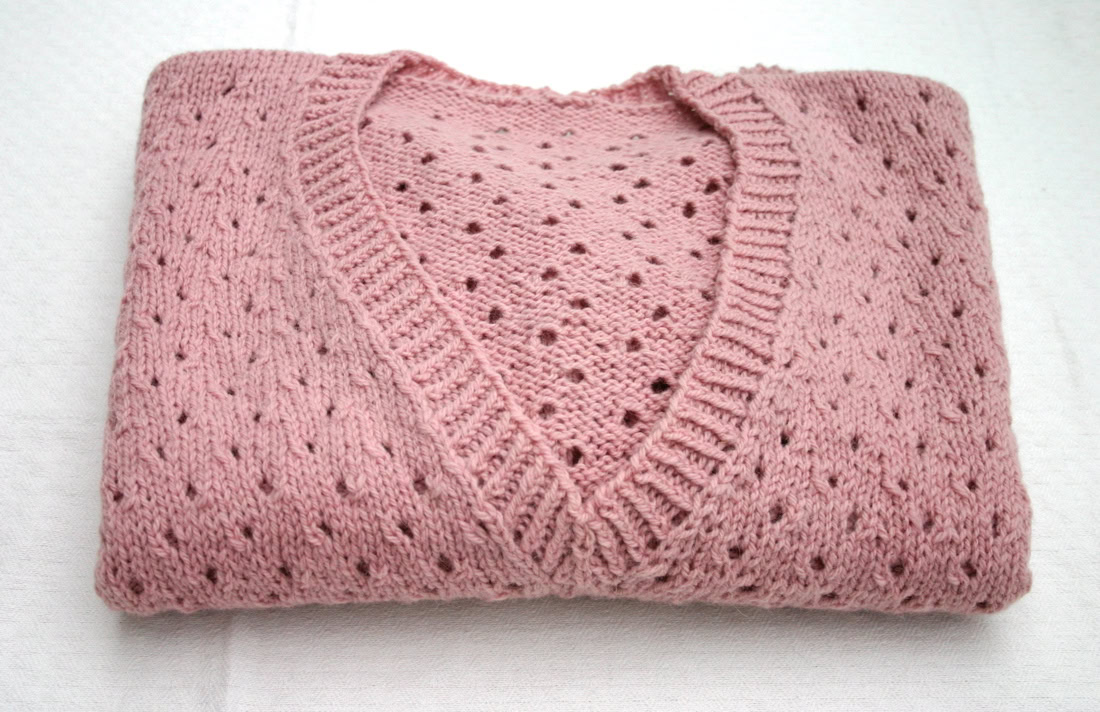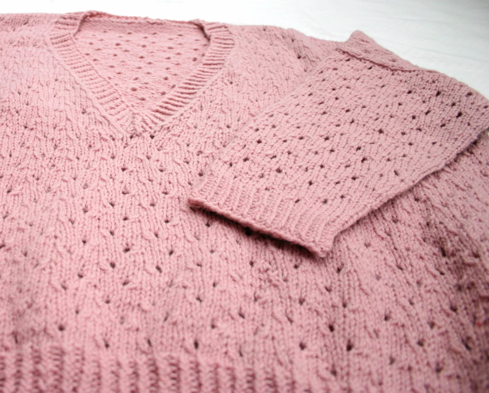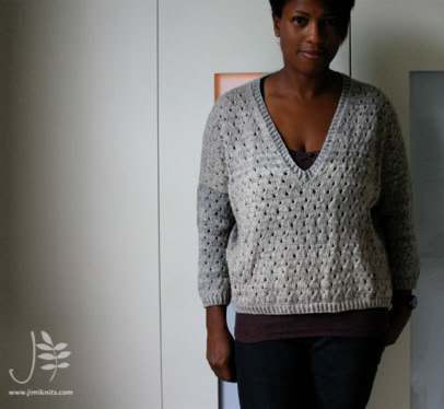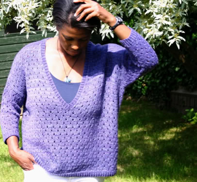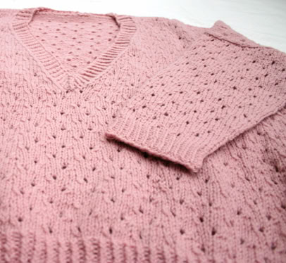 The front and back are knitted flat from the bottom up. Once seamed, the sleeves are picked up and knitted in the round from the armhole downwards. The neck band is also picked up and knitted using a twisted rib. A quick and satisfying knit!