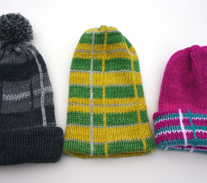 Rupert Plaid Hat - Addi Express - A fun and simple hat with a plaid/tartan design, made using the Addi Express King Size (46 pin) circular knitting machine.