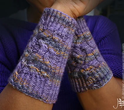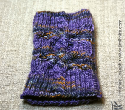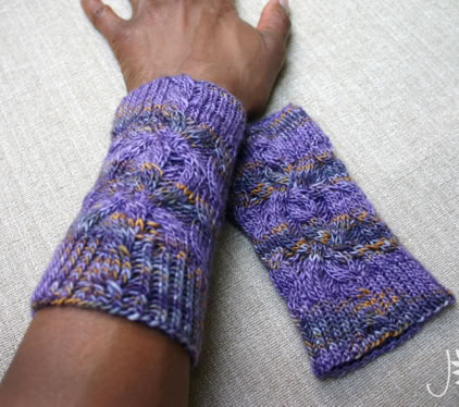 This cuff is knitted in the round using circular needles or DPNs if preferred. The twisted stitch ribbing gives the cuff a firm fit, while the cable pattern adorns the top section.